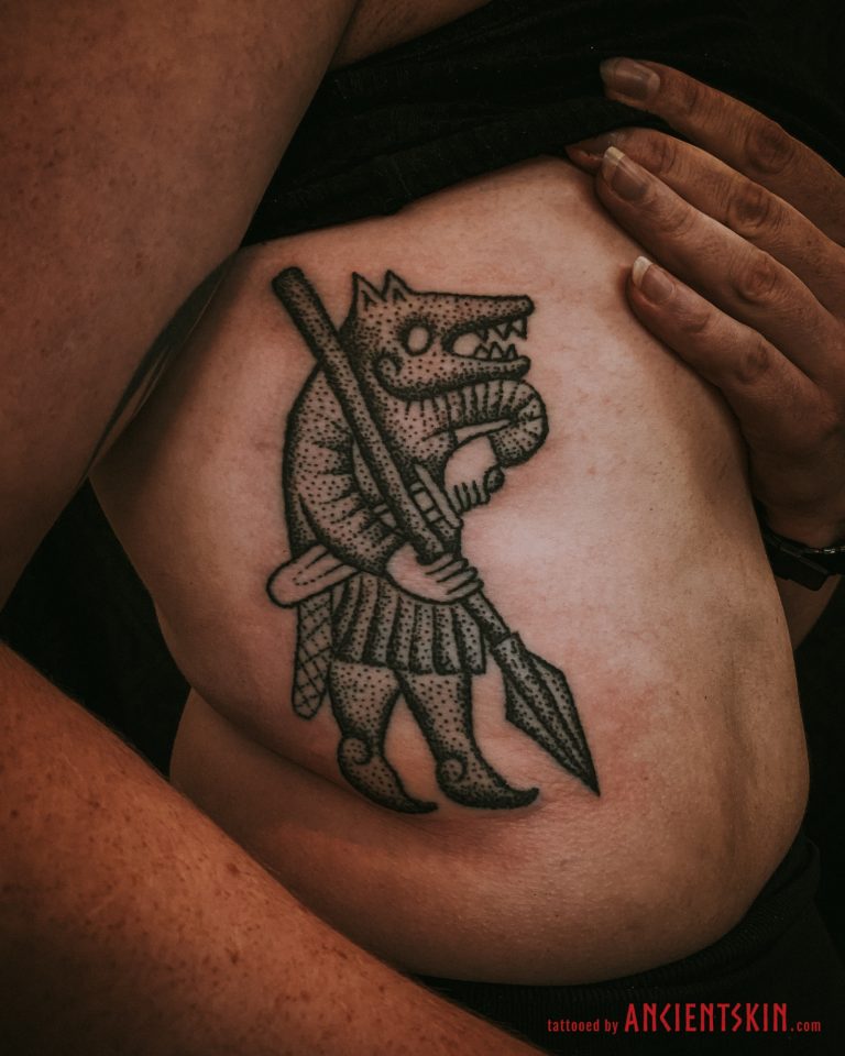Handpoked wolfman warrior tattoo – The Torslunda helmet plates are four cast bronze dies found in Torslunda parish on Öland, Sweden, displaying figures in relief